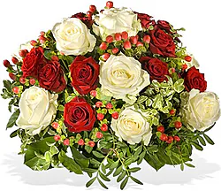 Bouquet de rosas rojas y blancas Polvo de estrellas
