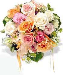Bouquet de rosas y gerberas de colores claros Alegría vivaz