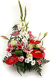 Arreglo con anturios y rosas rojas Lleno de alegrìa
